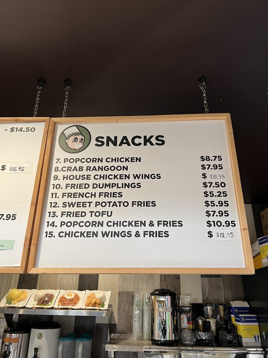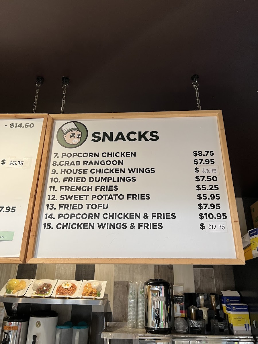Curry Pork Chop, Popcorn Chicken, 5 drinks options